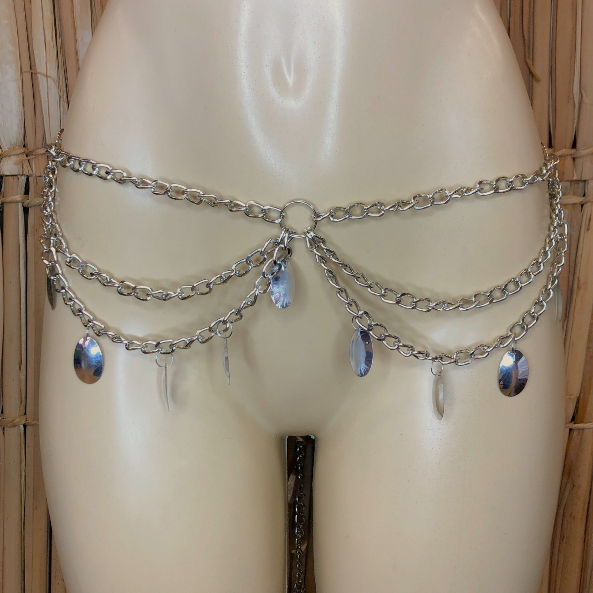 Cinto em corrente com Paete oval metalizado.