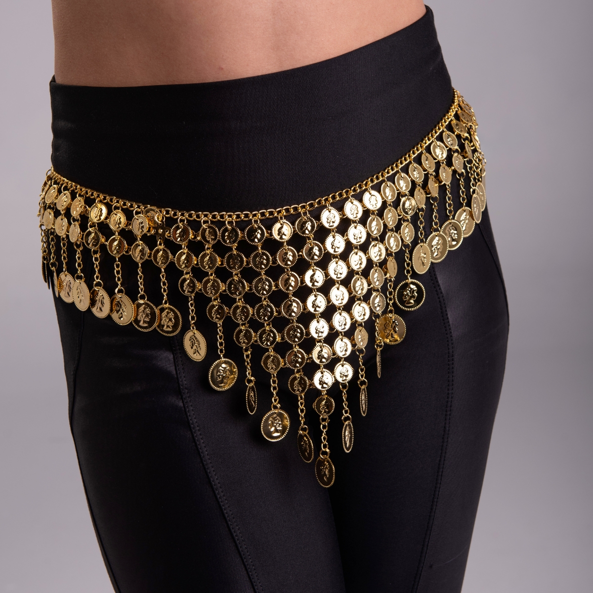 Cinto Moedas Douradas Lenço de quadril para dança do ventre, Cigana, Indiana.Inteiro em moedas.
