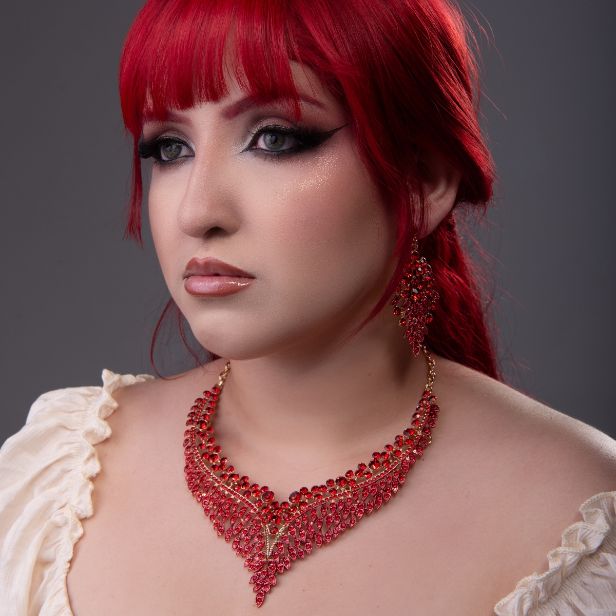 Colar e Par de brincos luxuosos com pedras Brilhantes que destacam o movimento e iluminam qualquer  figurino. O brilho intenso valoriza a presença no palco, trazendo elegância e sofisticação.