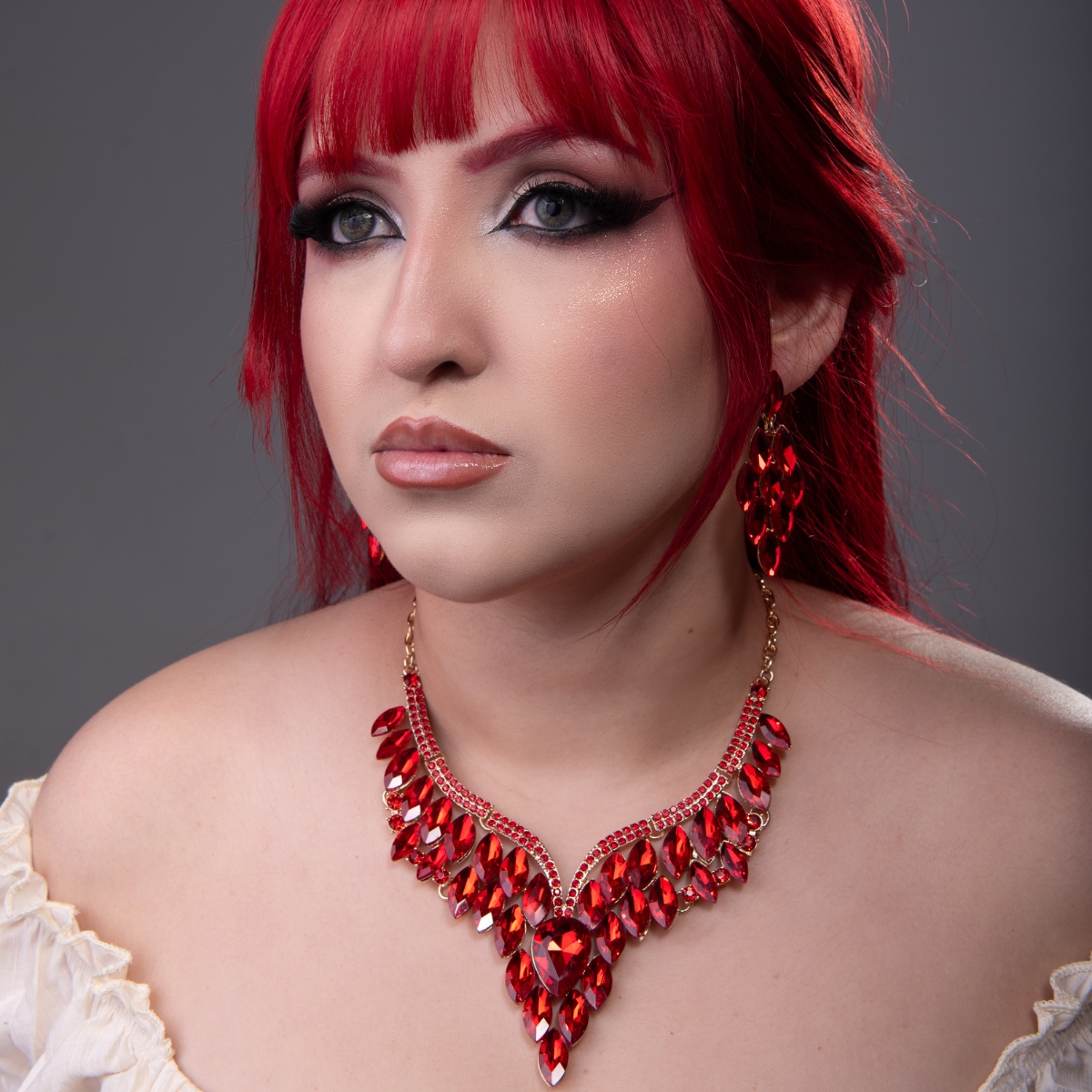 Colar e Par de brincos luxuosos com pedras e strass que destacam o movimento e iluminam qualquer figurino. O brilho intenso valoriza a presença no palco, trazendo elegância e sofisticação.