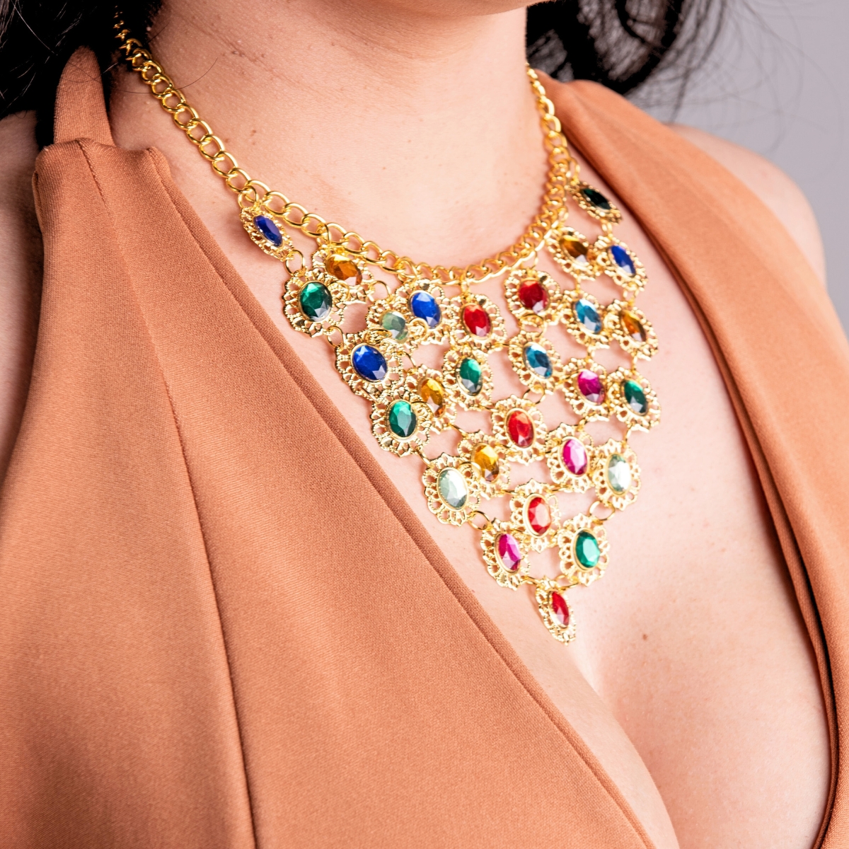 Lindo colar dourado com pedrarias coloridas para Dança do Ventre/Cigana/Indiana.