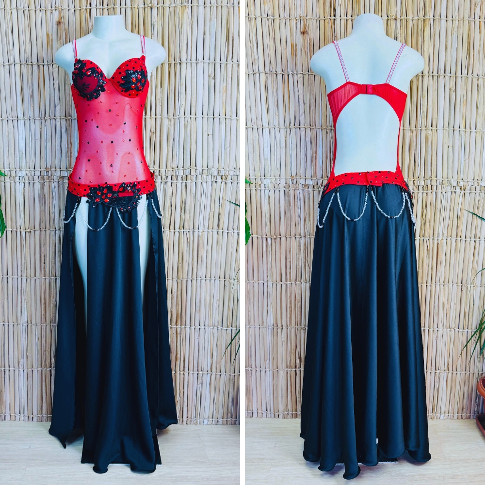 Peças disponivel á pronta entrega, body em tule segunda pele vermelho, cinto em malha bordado com renda, pontos de luz, saia godê 3mt com fenda aberta em toque de seda.