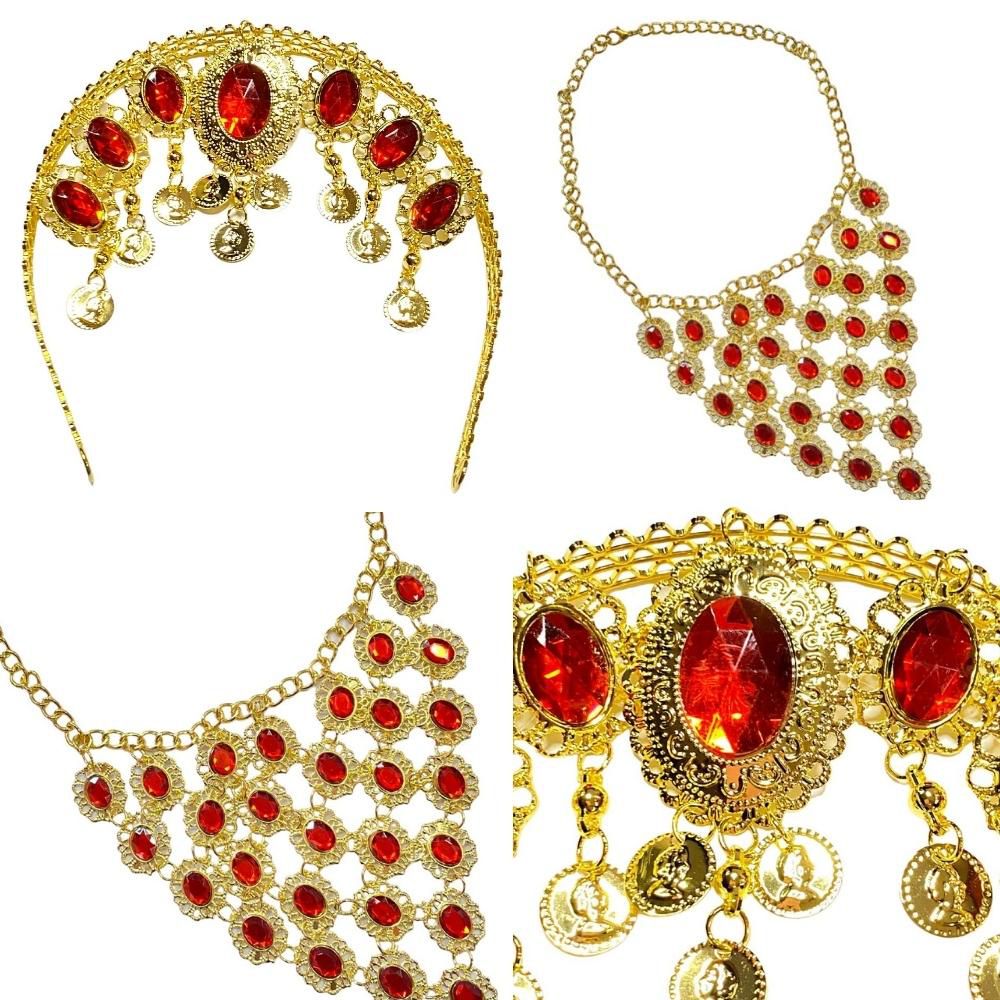 Colar com pedras vermelhas e tiara com pedras vermelhas: lindas para aulas e apresentações, efeito maravilhoso em palco.