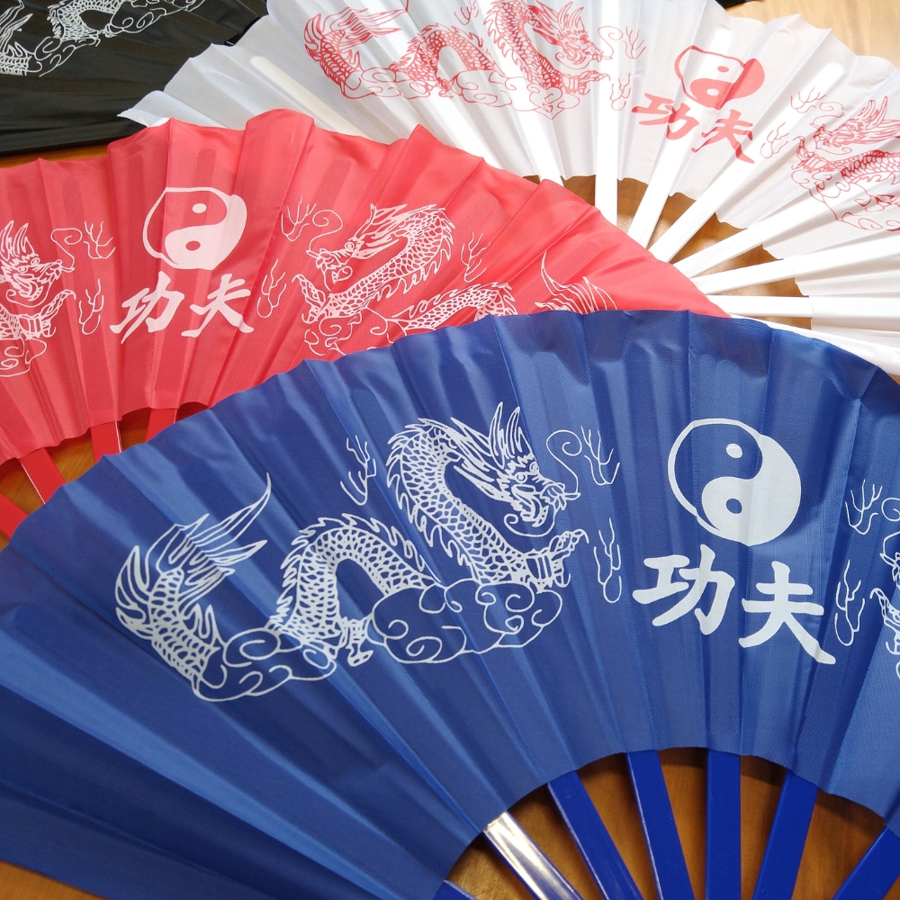 Leque De Mão Tecido Poliester Estampa Dragão Com Haste De Plástico Unidade .