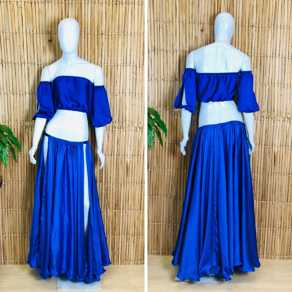 Conjunto de saia gode 9m fenda aberta mais top ciganinha