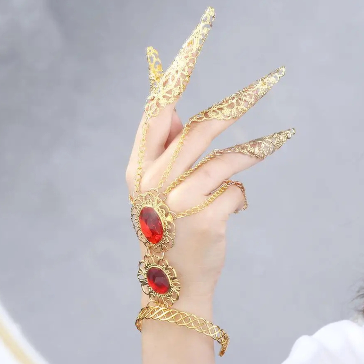 Pulseiras Com Garras Douradas e Pedras Vermelhas