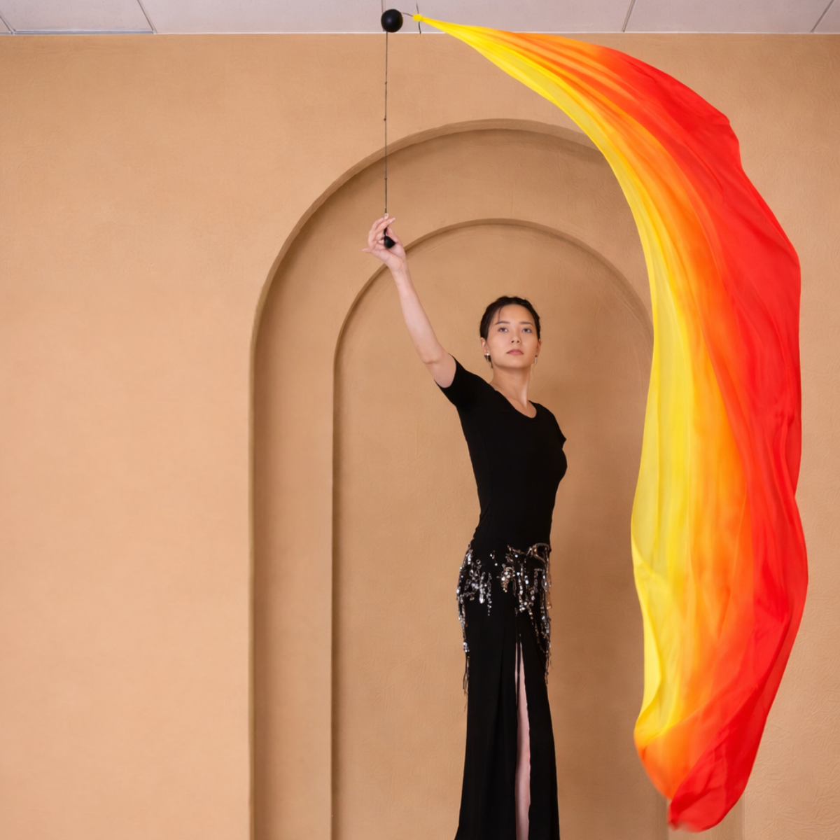 Véu Poi Unidade degradê Amarelo, Laranja e Vermelho